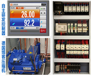 壓縮機采用德國博客或德國比澤爾,自主研發(fā)控制器可遠程操控、故障畫面顯示,多重保護裝制;
